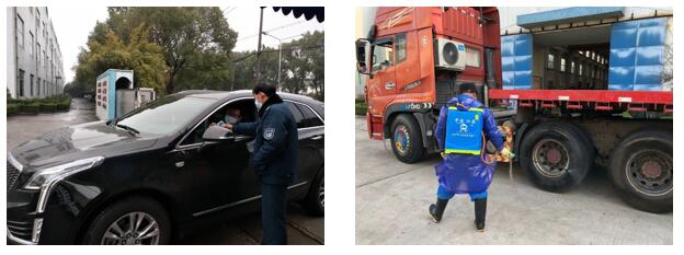 5、對(duì)外來(lái)人員進(jìn)行測(cè)溫、核驗(yàn)錫康碼,以及外來(lái)車輛消毒;