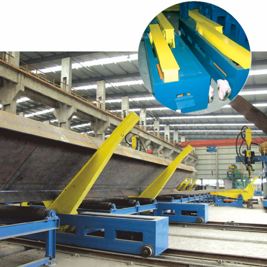 移鋼機(jī) H型鋼組立完畢后,兩臺(tái)移鋼機(jī)抬起工件送至60°翻轉(zhuǎn)支架上翻轉(zhuǎn)并焊接。